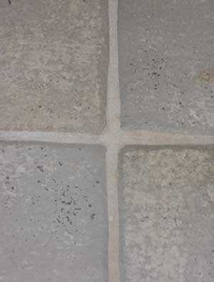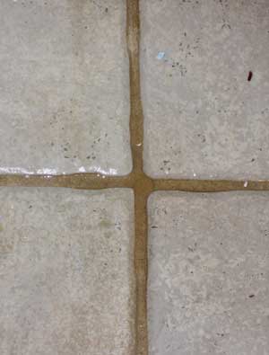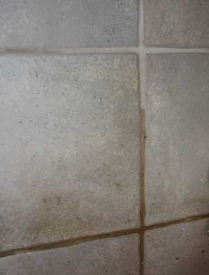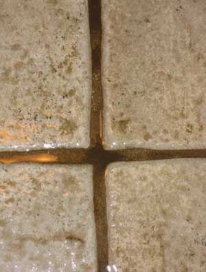 Tile shown after spraying our Tile & Grout Cleaning Solution, but before the steam/scrubbing application